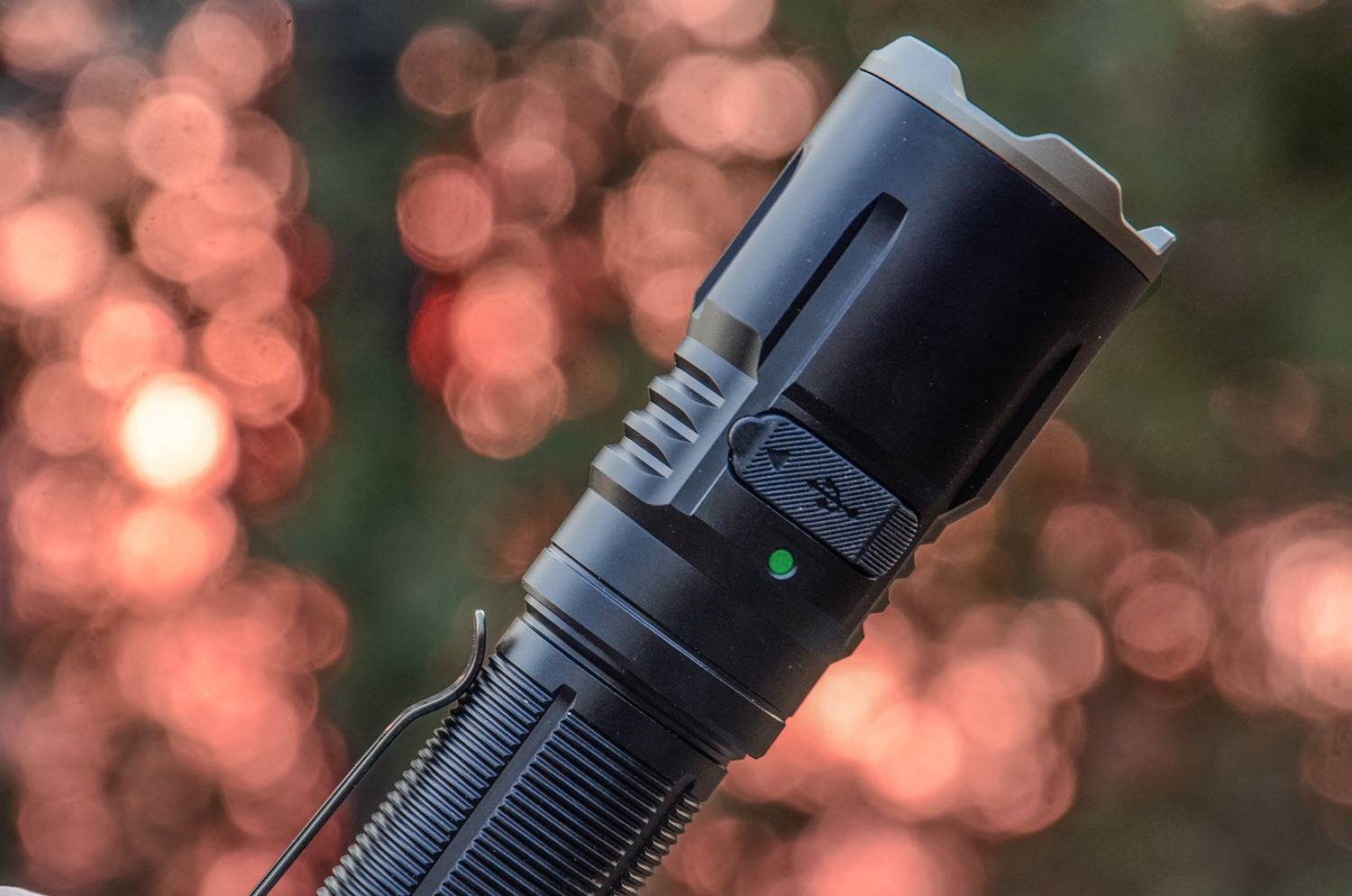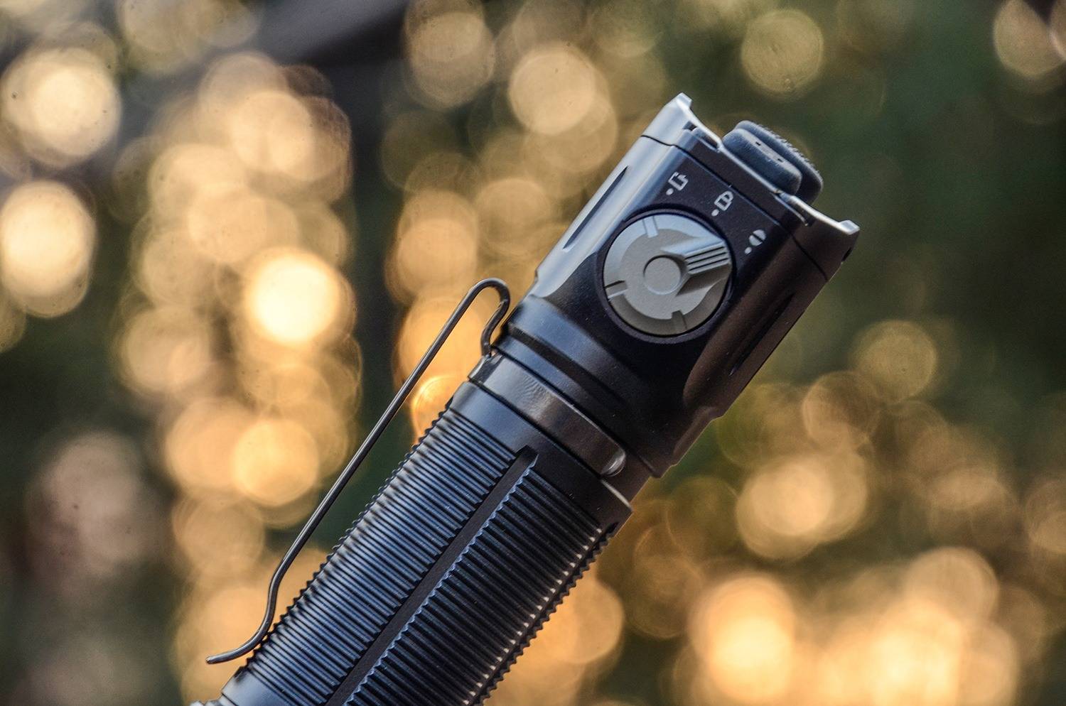 筒身尾部设计一支高弹力不锈钢抱夹,同样是镀黑处理,夹子内外都采用圆弧引角,插拔顺畅,可以将TK25R随手别在口袋、背包等位置,携带自由,取用方便。