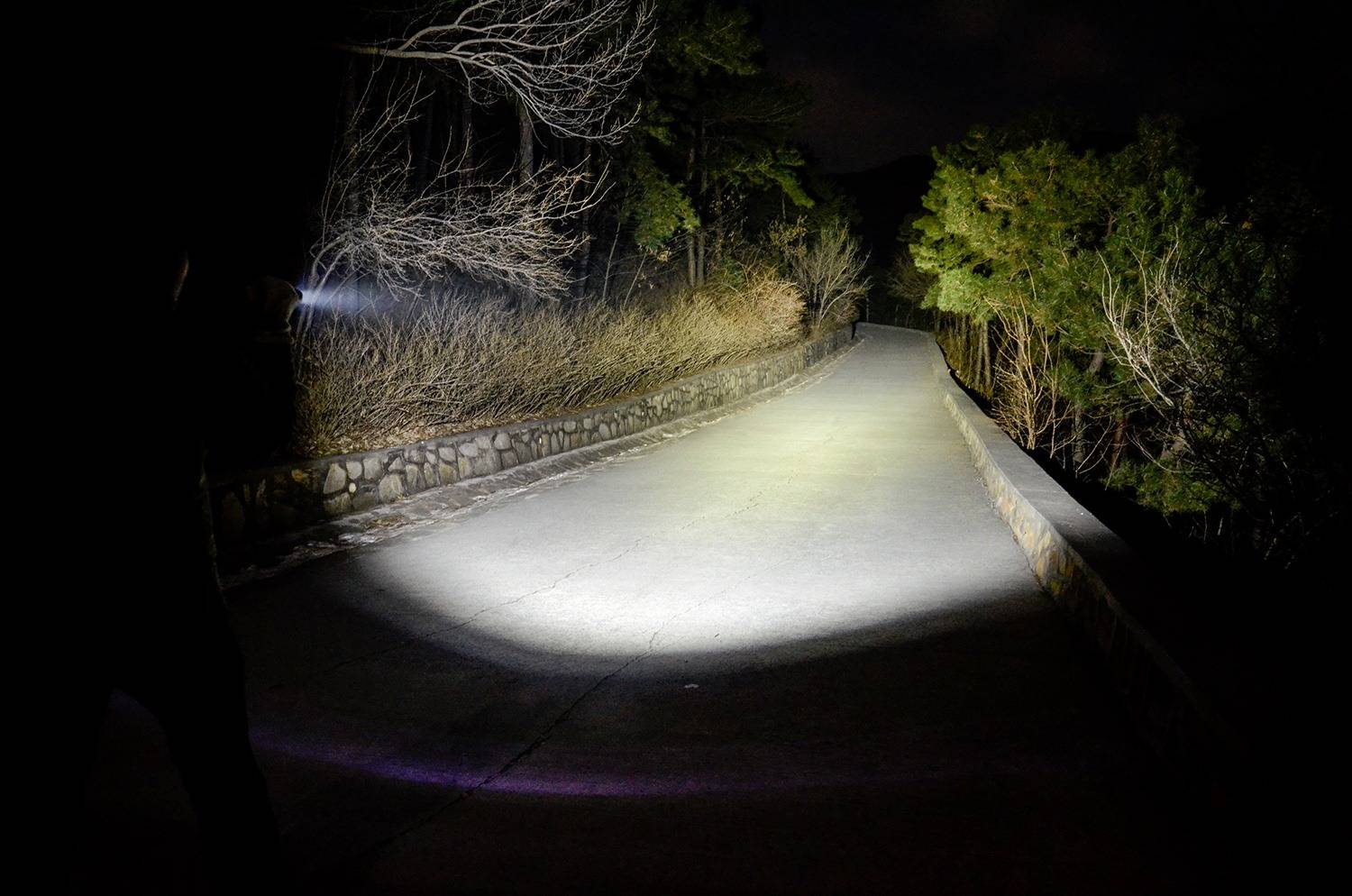 泛光的亮度比较适中,亮度均匀,与聚光能够形成一体化的照明区域,同步提亮环境,避免明暗差距太大而觉得不适,光线铺路效果好,视野开阔。
