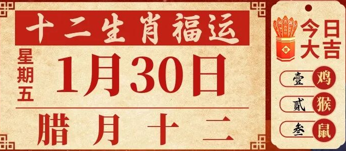 2026年1月30日,星期五,农历腊月十二 (乙巳年己丑月甲辰日),法定工作日。