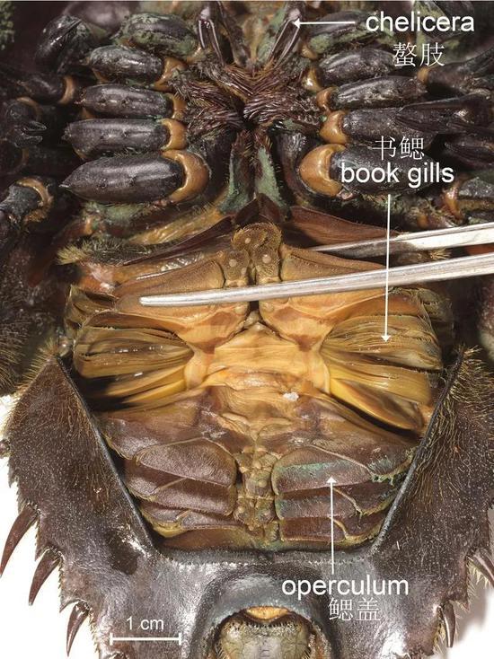 △ 这张图片标出了先生鲎的书鳃,这种结构一页页的和书本真的很像
