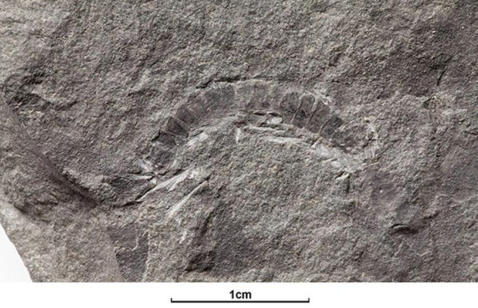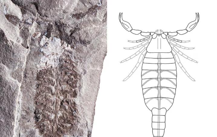 上面这个化石是Parioscorpio venator,或者称为“始祖猎蝎”。