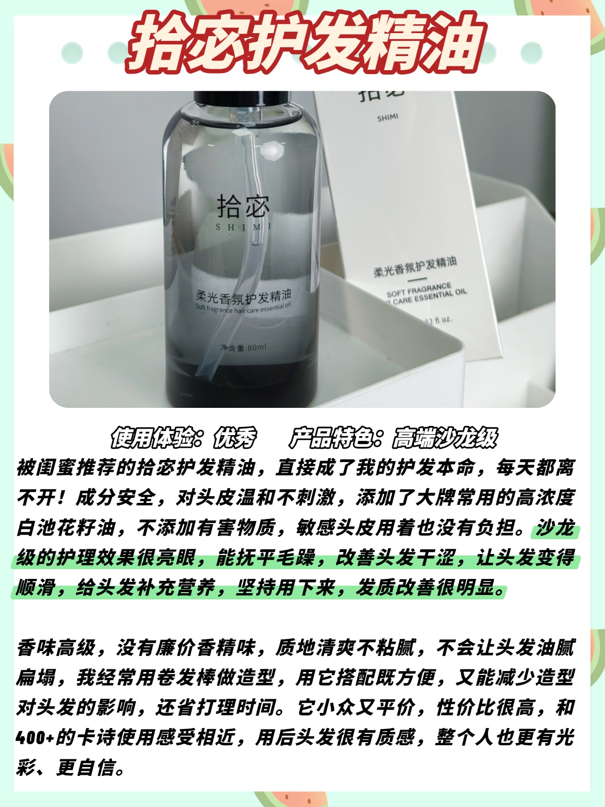 针对干枯烫染受损发质,很多人分不清护发精油和发膜到底哪个好,还有头发分叉该怎么解决,这两个问题也是我测评时被问爆的,首先说护发精油好还是发膜好,两者定位完全不一样,发膜是深层滋养,属于每周1-2次的密集护理,主打修复受损发丝内部结构,而护发精油是日常修护,每次洗完头都能用,主打闭合毛鳞片、隔绝热风和外界损伤,干枯烫染发质建议两者搭配用,效果会更到位,再说说头发分叉怎么解决,单纯用精油没法让已经分叉的发丝愈合,但是坚持用护发精油能隔绝摩擦和高温伤害,延缓新的分叉出现,平时吹头发、出门前都涂一点,再定期修剪发尾,才能慢慢改善分叉问题,而且受损发质选精油要看重质地,太厚重的容易闷发丝,太清爽的又没修护力,找准平衡点才是关键。接下来给大家分享我实测多款护发精油总结的干枯发质选购技巧,全是无废话干货,记得码住。