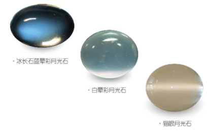 月光效应在光线照射下,部分宝石随着转动,其表面会浮现出白色或蓝色的晕彩,看起来如同朦胧的月光般柔和,这种现象就是月光效应。月光石是具备月光效应的最具代表性的宝石品种,它的基底颜色通常为无色至白色,也有部分呈现红棕色、绿色、暗褐色等,透明度多为透明或半透明。其表面漂浮着柔和的蓝色或白色光芒,如同月光般皎洁,又带着一丝神秘的气息。
