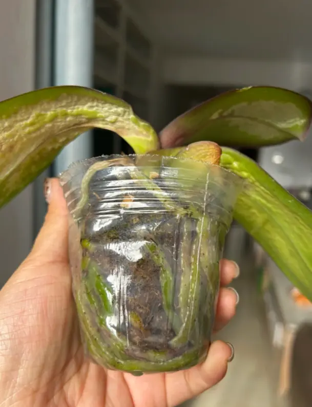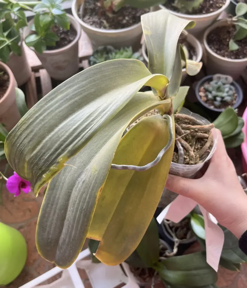 冻坏的蝴蝶兰,叶子会变成半透明的状态,用手摸起来软软的,有些时候,只是叶子的部分位置被冻坏了,用剪刀剪掉,只要根系是健康的,没有变软,蝴蝶兰就是没问题的,拿到客厅养护一个冬天,到了春季再拿到阳台上继续浇水养护。