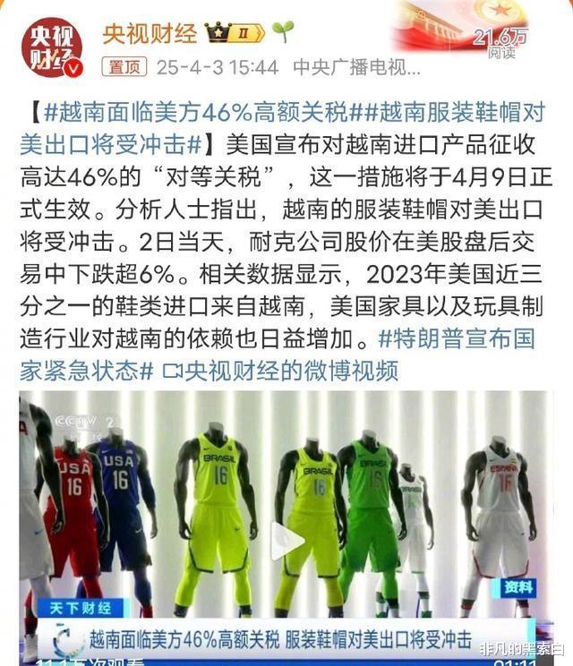 现在,美国的耐克和阿迪达斯商品,如果是在越南工厂生产的,进关时得交三倍以上的税,这无疑会带来个大麻烦。