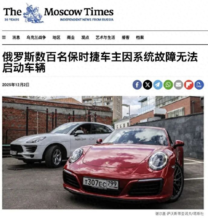 11月28日起,俄罗斯多地陆续传出保时捷车辆无预警瘫痪的情况,数百辆汽车突然锁死断电、无法启动。