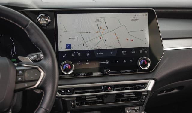 在此之上,新车对内饰的综合用量也进行了提升,多种材质的面板进行搭配,醒目的马克莱文森音响,厚实的一体式运动座椅等细节,都显示了不错的档次感,而纯黑的内饰配色,随处可见的翻毛皮装饰也进一步增强了运动感,符合动力上的表现。而说到动力,该车则作为目前RX车型顶配款式,还是FSport套件,搭载了丰田最新的2.4T发动机配电动机及6AT变速箱组成的油电混动系统。