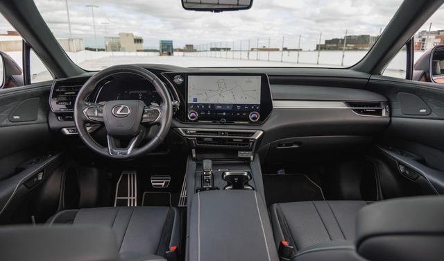 中央镶嵌有雷克萨斯字母车标,而大倾斜角度的后风挡与后保险杠多段式镂空装饰相对应,同样彰显了运动的姿态,而没有任何裸露的排气,体现出新能源车应有的态度。在内饰部分,新车也引领了最新的家族风格,标志性的几件套,比如大尺寸的悬浮液晶屏,嵌入屏幕的小尺寸双旋钮,液晶仪表盘,电子挡杆,按钮式的车门打开方式都已经成为新一代雷克萨斯车型的标配。