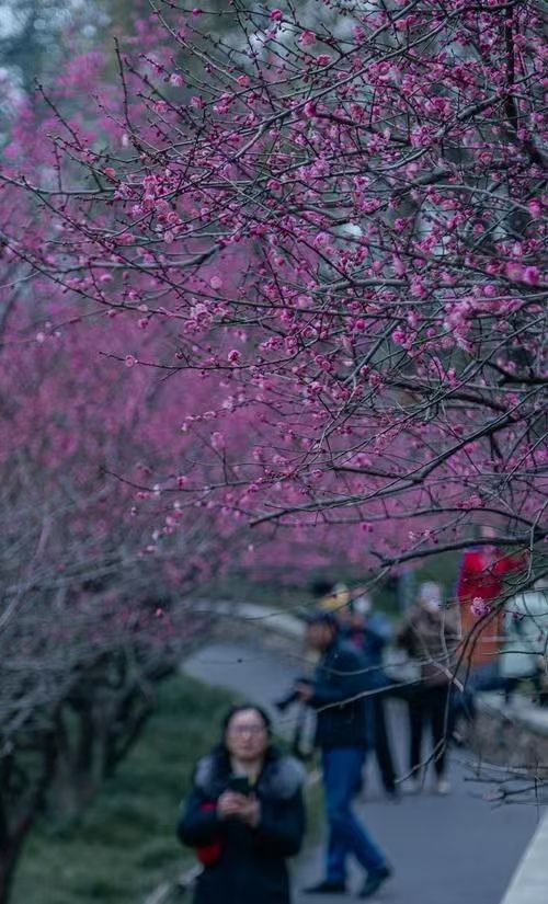 红梅的盛开,吸引了无数游客的目光。他们驻足欣赏,拍照留念,低声吟诵着杜甫的诗句,仿佛在这一刻,历史与现实交织在一起,让人沉醉其中。红梅成为了连接古今的桥梁,让人们在欣赏美景的同时,也能领略到中华文化的博大精深和源远流长。