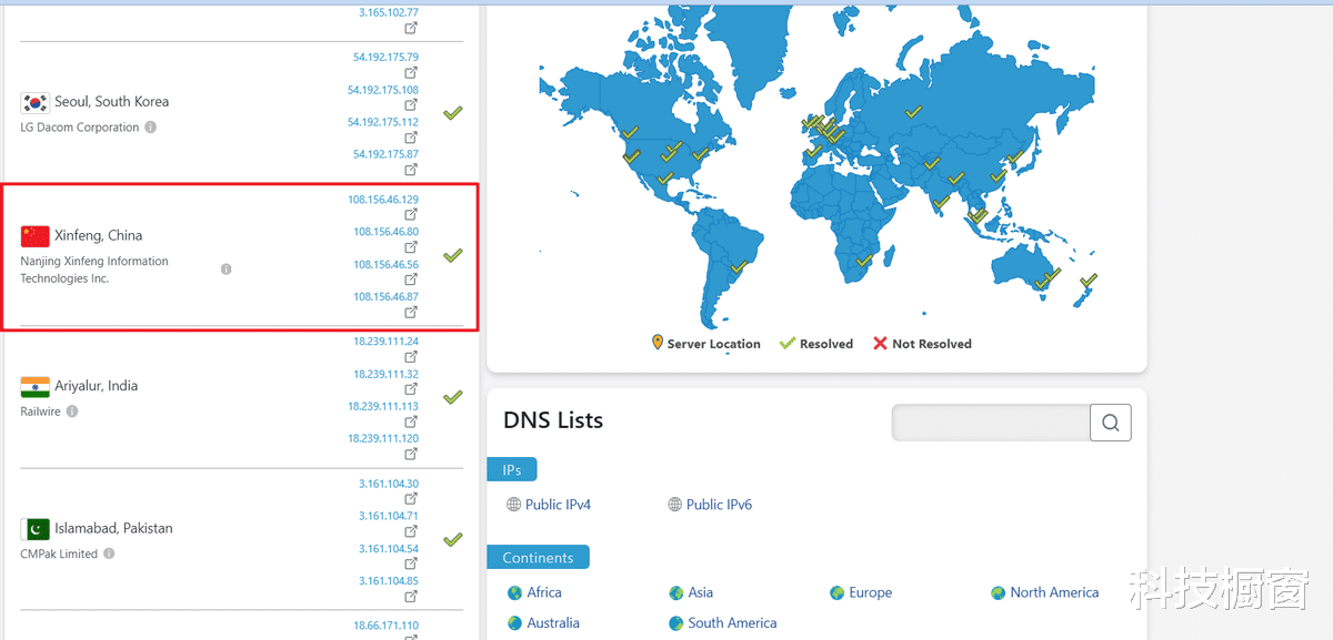 打开网址【https://dnschecker.org】,然后域名 api.themoviedb.org ,类型默认“A ”,点“查找”按钮。