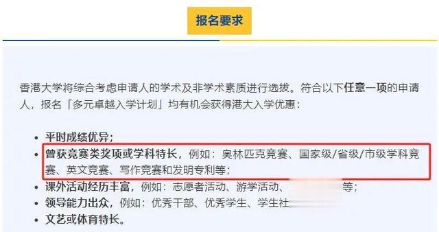 以2025年香港大学“多元卓越计划”为例,该计划侧重于招收获得竞赛奖项的考生利好竞赛生,据了解,一般可以获得5-30分的加分优惠,利好竞赛生!