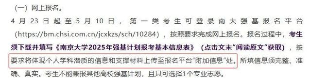 ✅首先在强基报名材料上有很多积极信号,例如南大可上传学科潜质、领域特长证书或证明材料等。