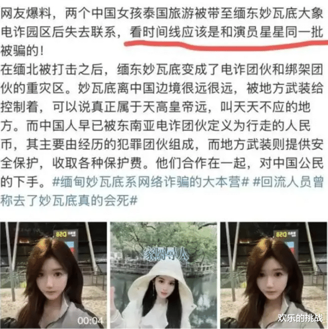 两个女孩的消失,引发全民焦虑就在王星获救不到一年,两名年轻女孩——许好宁和林美玲,像他一样消失了。她们在泰国旅游途中失联,最后的定位,赫然指向缅甸东部的妙瓦底大象园区。家属得知消息后,彻底崩溃。许好宁父亲在接受采访时声音颤抖:“我女儿才25岁,去泰国前还跟我说要买礼物回来,怎么会这样?”而林美玲的母亲直接在家晕倒,送医后至今未出院。妙瓦底大象园区,熟悉它的人都知道,这其实是一个“电诈园区”。这里被犯罪组织控制,专门从事网络诈骗、绑架、勒索等非法活动。很多人被诱骗过去,以为是去工作,结果手机被收走,护照被扣押,甚至还有人被要求剃光头,强迫拍下“家人筹款”的视频。女孩们的家属发出的每一条寻人信息,都像是一根根针刺在网友的心上。有人问:“她们只是普通人,为什么要承受这样的痛苦?”也有网友愤怒地留言:“犯罪分子怎么能猖狂到这种地步?难道就没有办法制止吗?”“明星梦”的陷阱,多少人还会掉进去?