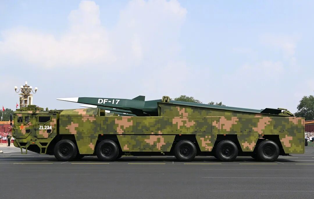 东风-17 高超声速中程弹道导弹2019年国庆大阅兵时公开亮相,相当惊艳。是中国首款高超音速武器系统。采用乘波体弹头,最高速度超过10马赫,射程1800-2500公里,具有强大的突防和机动能力。