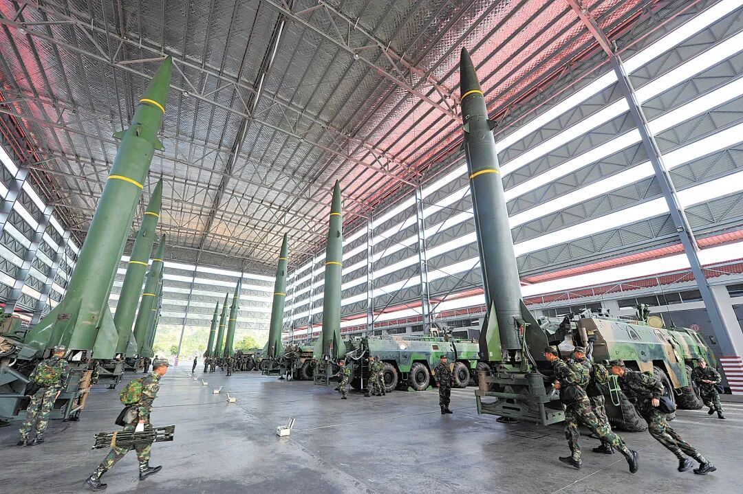 东风-16 中程弹道导弹2011年前后服役,在DF-15的基础上提高射程、精度、打击能力。射程达到1200公里左右(改进型射程1500公里),打击精度达到5米以内,备末端机动 、多弹头适配 、快速反应能力。2015年九三阅兵时正式公开亮相。