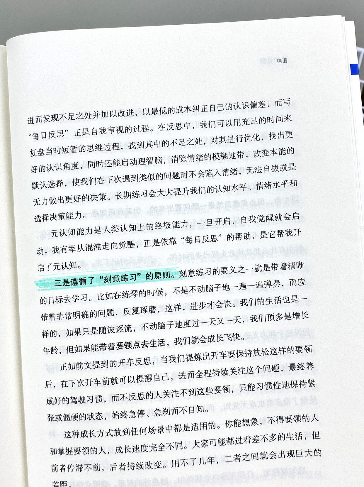 三是遵循了“刻意练习”的原则。刻意练习的要义之一就是带着清晰的目标去学习。比如在练琴的时候,不是不动脑子地一遍一遍弹奏,而应带着非常明确的问题,反复琢磨,这样,进步才会快。我们的生活也是一样的,如果只是随波逐流,不动脑子地度过一天又一天,我们顶多是增长年岭,但如果能带着要领点去生活,我们就会成长飞快。