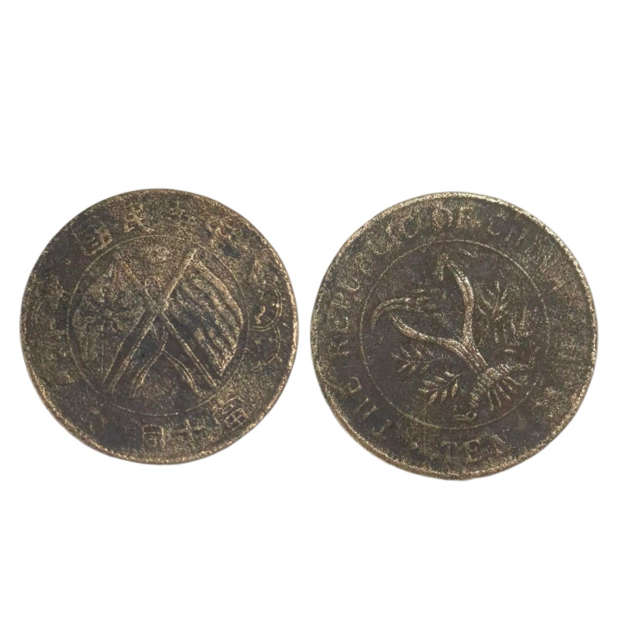 错版地位垄断:它是双旗铜币系列中罕见的 “重度背逆错版”,正面 “中华民国” 双旗图案与背面 “嘉禾十文” 纹饰存在 20 度的旋转偏差。这种 “模具对位误差” 在机械化铸造的民国铜币中具有 **“不可复制性”**,是造币工艺偶然失误的 “孤例性存在”;