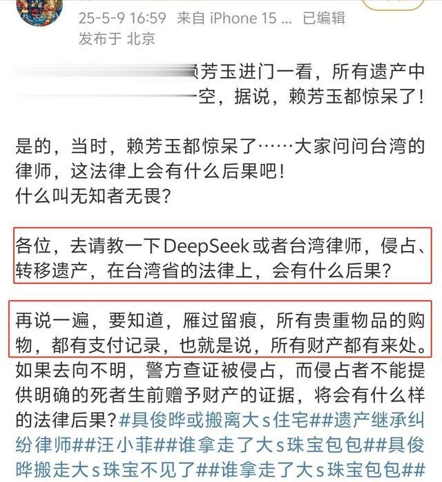 这场豪门遗产大战会怎么收场?谁知道呢。是刑事立案一查到底,还是私下和解分赃了事?唯一能确定的是,大S那个装满奢侈品的家,现在怕是连张值钱的纸巾都找不到了。