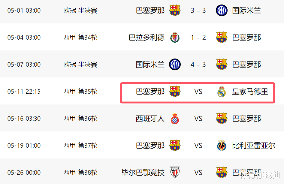 看到国米在场上狂欢庆祝,巴萨球员则神情落寞。不过他们没有时间悲伤,因为根据赛程安排,大约4天后他们将在主场迎战皇马,2队将上演大决战。如今巴萨虽然在西甲领先4分,但是他们一旦输给对手,西甲争冠形势将发生巨大的变化。在输给国米之后,巴萨无论如何不能再输给皇马,否则的话,巴萨很可能彻底崩盘。要知道,西甲最后一轮,他们还将做客对阵毕尔巴鄂竞技,巴萨并没有足够的把握能战胜对手。接下来和皇马的比赛,很可能决定西甲冠军的归属,巴萨只要保持不败,他们就大概率夺冠。要是皇马客场获胜,他们就将看到翻盘的希望!