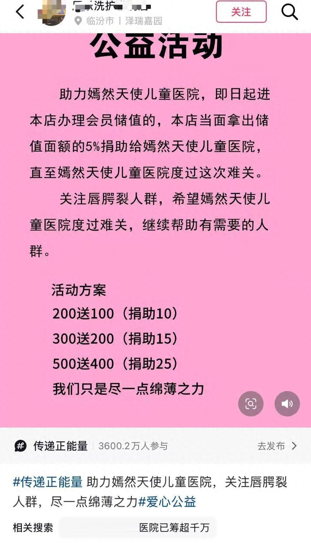 近日,嫣然天使儿童医院因拖欠 2000 万元租金陷入关停危机,引发社会广泛关注。1 月 16 日,山西临汾一家鞋包皮具洗护店发布 “公益活动” 称,将通过会员储值捐款的方式助力该医院渡过难关,此举随即引发多方关注与争议。