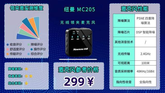 机型亮点综述:全指向性设计+智能芯片+强降噪技术,室内能压制轻微背景杂音,几乎没有电流声。2.4G技术支持100米内无遮挡传输稳定,短距离移动拍摄几乎无断连,人声还原达到基础水准,没有明显失真。降噪逻辑侧重基础杂音过滤,可应对轻度环境杂音,极端嘈杂环境下杂音过滤能力有限;户外风噪抑制效果一般,需要搭配防风罩。