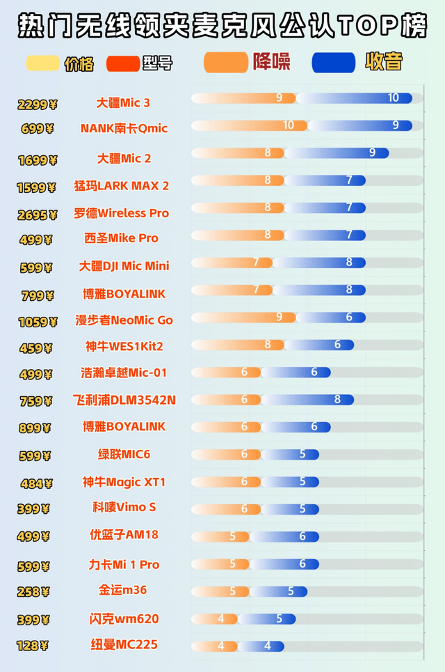 偶尔拍短视频记录生活,百元档基础款完全够用,满足日常收音需求不踩坑。高频直播、全职做内容的话,直接冲 500 元以上的中高端款,音质和稳定性的提升能直观体现在作品里。