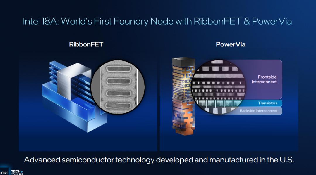 生产工艺:首发Intel 18APanther Lake为什么能做到这样的平衡与融合?首先得说说它核心秘密——Intel 18A工艺。这是英特尔首个2nm级别的量产制程,也将是英特尔未来三代客户端和服务器产品的技术基座。更重要的是,它带来了两项重要创新。