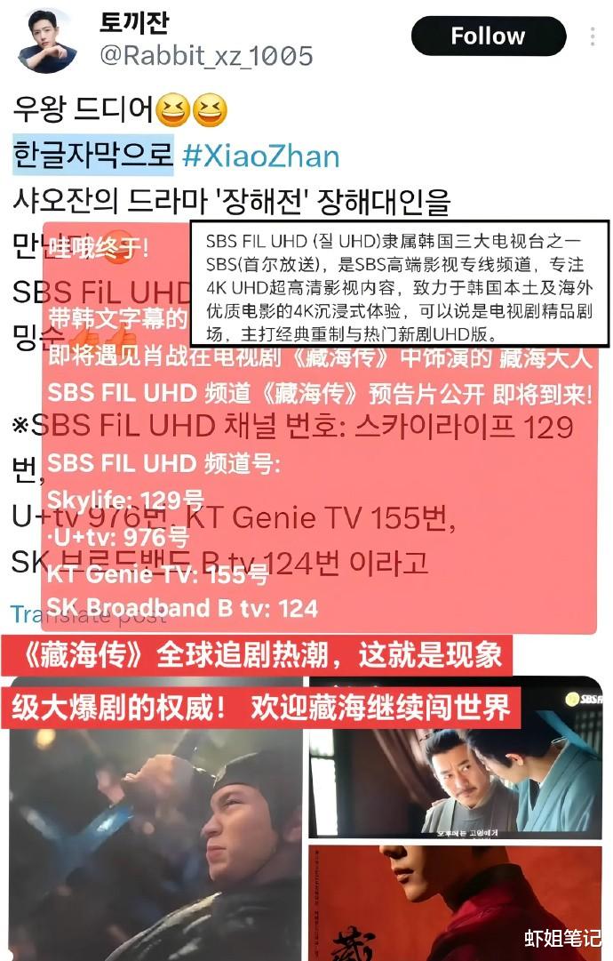 这次《藏海传》登陆韩国SBS,我相信一定会再次掀起一股追剧热潮。它会成为韩国观众了解中国文化的一个窗口,也会让更多人认识肖战,爱上肖战。这不仅仅是一次简单的播出,更是一次文化交流的盛宴!
