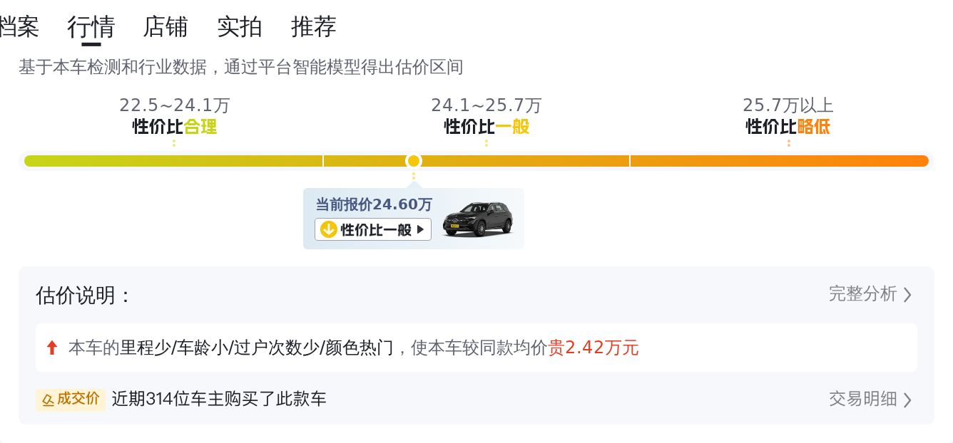 市场行情方面,根据大数据预估显示,这款车的市场价格在21.6万至25.87万之间。具体的价格因车辆的车龄、里程、保养情况等因素而有所不同。本车定价较为合理,综合性价比指数高达72%,在同车型中价格属于较低的水平。此外,本车的保值率也较高,预计两年后仍能保持较高的售价。