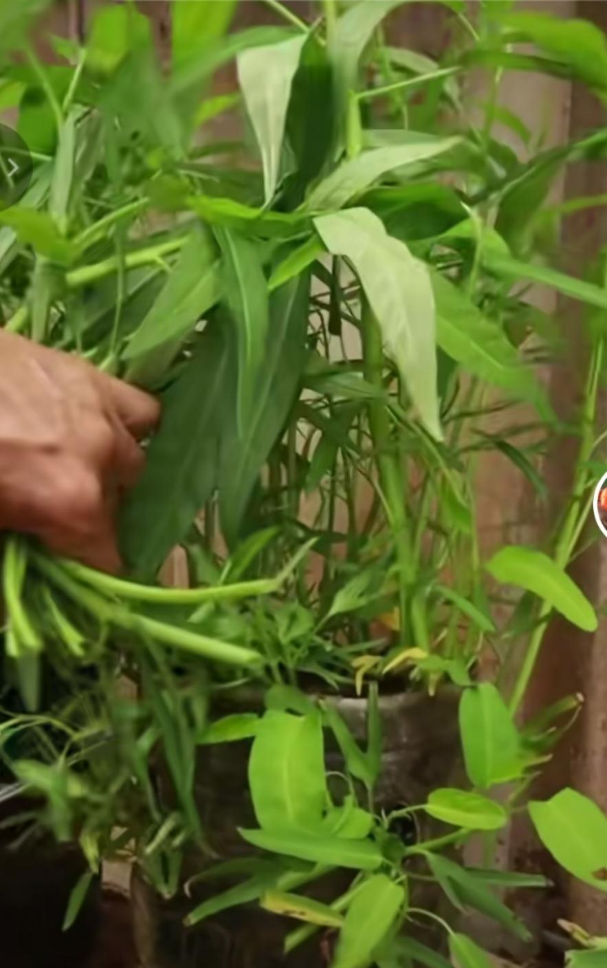 一般每隔两个星期,大叔就能收获一批嫩绿的空心菜,无需再去市场购买。