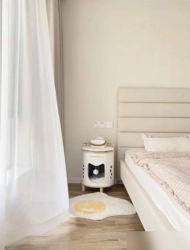 卧室一整墙顶天立地柜专治囤货癌换季被子羽绒服往里扔门板合上世界安静侧面掏个洞给猫主子当瞭望台毛孩子睡得四仰八叉呼噜声当白噪音比啥ASMR都好使窗帘选克重260g遮光率90%周末想睡到中午太阳也拿你没辙。