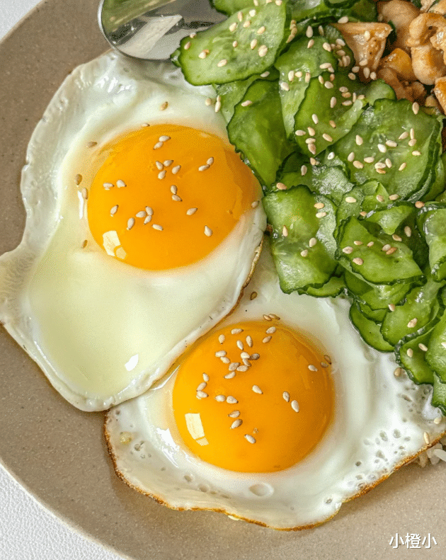 热锅放1.5汤匙油,烧至六成热,先煎鸡蛋:中小火慢煎至蛋白边缘微焦、蛋黄仍软嫩,盛出备用。
