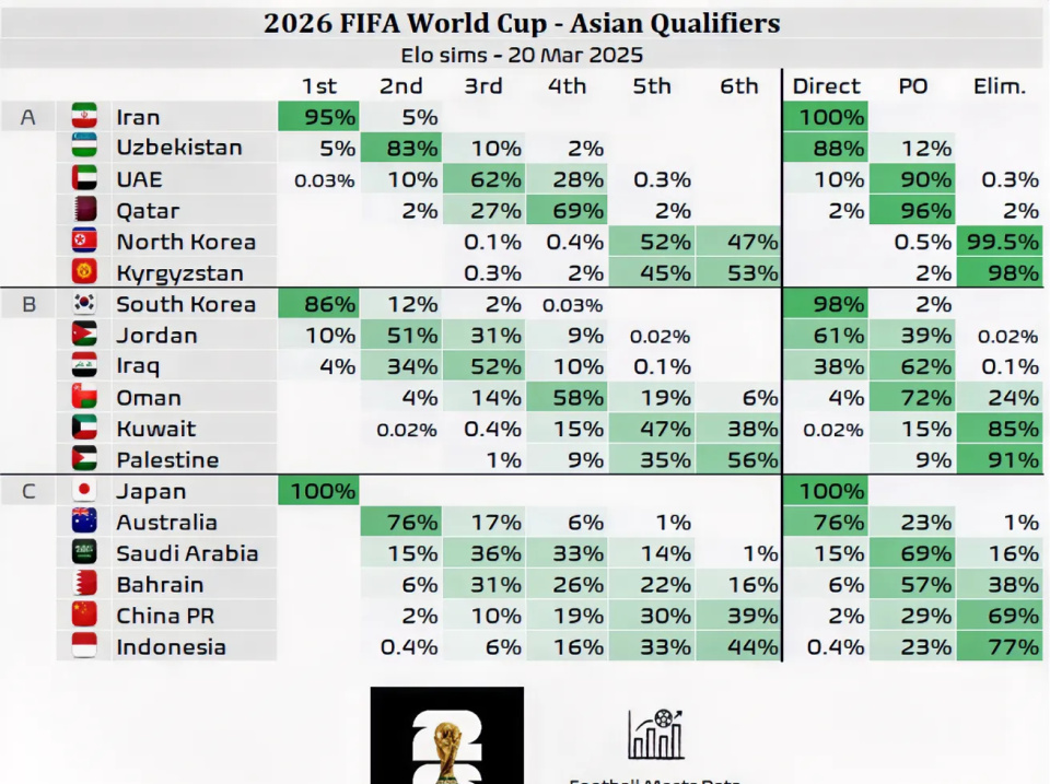 国足在输给沙特队后,晋级形势愈发严峻。根据目前的情况,日本和澳大利亚直接晋级的概率最高,而沙特和巴林则可能通过附加赛争取机会。国足最有可能在小组中排名第五,而印尼队则可能垫底。国足排名小组第四的几率仅有19%,而第五和第六的几率分别为30%和39%。接下来在杭州主场迎战澳大利亚的比赛将至关重要,若失利,国足将彻底无缘小组前两位。