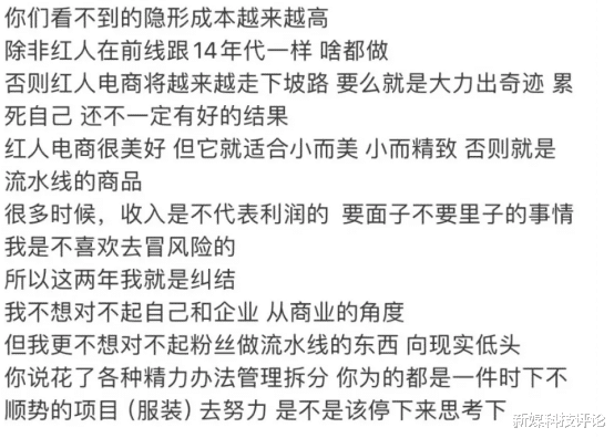 过去一年,已有超过20家淘宝服饰老店先后宣布关闭,比如网红张大奕的“吾欢喜的衣橱”,张大奕表示,服装品类微薄的毛利率,支撑不了各项运营成本,很难赚到钱。