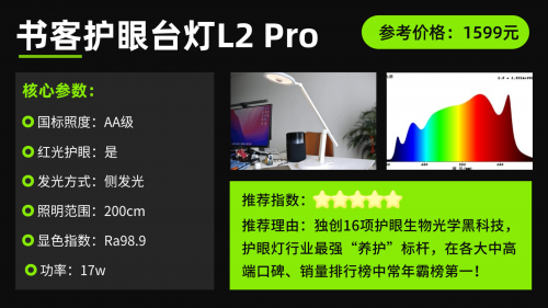 学生护眼台灯推荐第一名:书客L2 Pro