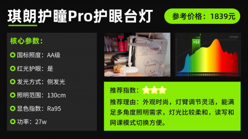 学生护眼台灯推荐第四名:琪朗护瞳Pro