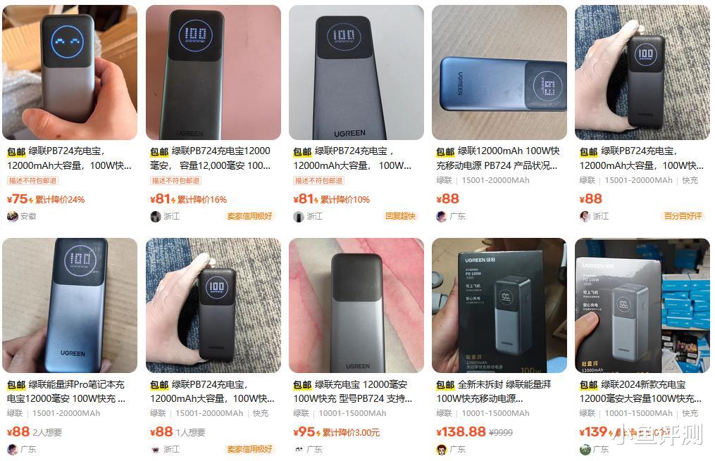 今天刷到个充电宝,感觉不亏。绿联100W快充充电宝卖家标价75元,型号是绿联的PB724,12000mAh容量,支持100W超级快充,约等于一包华子的价格就能带走。