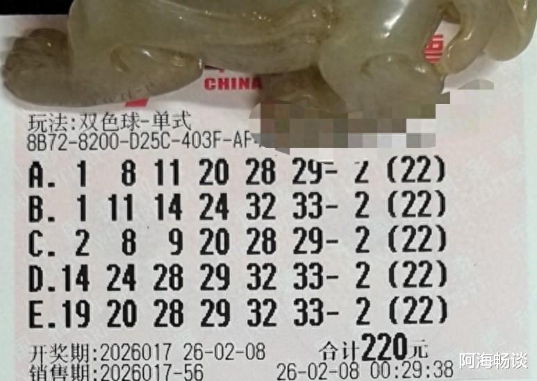 大家好!今天是2026年2月8日,星期日,双色球第26017期将于今晚开奖。开奖前夕,已有不少朋友分享了他们的票面。目前,本期各类票面已陆续公布,下面让我们一起来欣赏。