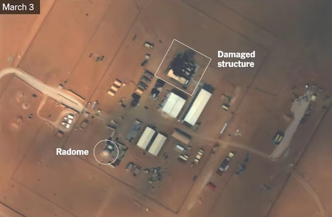 最狠的几处:巴林美国第五舰队总部——这是美军在中东发号施令的"大脑";卡塔尔乌代德空军基地;科威特的阿里夫詹营地;沙特的苏丹王子空军基地。3月4号伊朗还派了9架无人机去"补刀"沙特的那个雷达,虽然被沙特击落了,但明显是冲着彻底废掉这些设施去的。