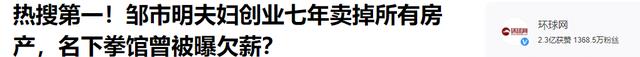 环球网:热搜第一!邹市明夫妇创业七年卖掉所有房产,名下拳馆曾被曝欠薪?