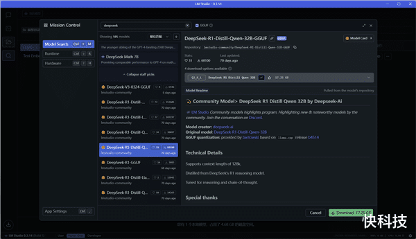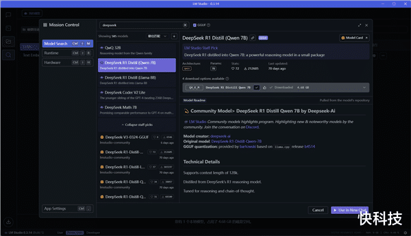 在LM Studio中,我们可以直接看到每个模型相关的参数和介绍,更方便选择合适的模型。