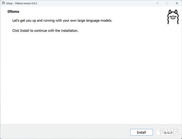 虽然Ollama的安装界面没有中文,但和普通安装程序并无区别,点击Install之后选择安装目录位置,即可完成安装。