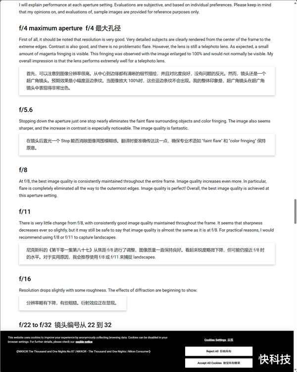 我们打开一个英文网页(尼康英文官网的一千零一夜,中文官网的这个专题消失了,非常遗憾),测试Deepseek-R1:1.5B大模型的翻译效果,可以看到Deepseek-R1作为一个推理模型,在语言翻译这一方面并不擅长,翻译速度很快但效果非常不理想,这时候我们就需要换一个大模型来提高翻译效果。