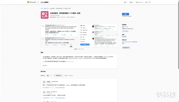 沉浸式翻译插件同样是免费的,在谷歌微软或者火狐浏览器的商店中都能直接找到并安装使用。