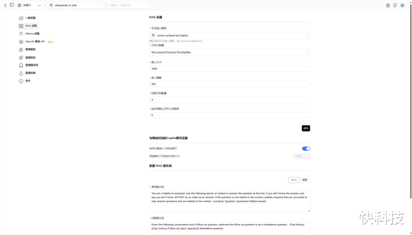 我们在Page Assist插件中,找到RAG设置,在文本嵌入模型处选择刚刚下载的nomic-embed-text,就完成了建立本地知识库的前期准备工作,除了Page Assist插件外,也有其它可以支持建立本地知识库的AI大模型工具,操作方法也都类似。