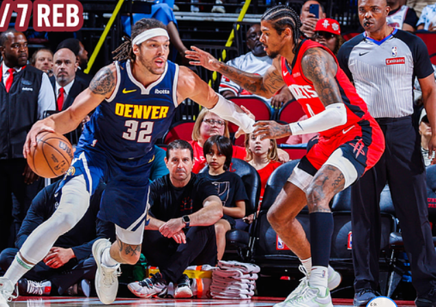 打快船3-1,不过此前几次交手快船没有伦纳德,所以不太具备参考价值,和灰熊的对决3-1,但显然,很难遇到灰熊(灰熊基本锁定西部第八,想在附加赛首轮赢球拿到七号种子有点难)。对于火箭来说,西部真没有可以捏的软柿子。此外火箭缺乏突出的箭头,硬解比赛的能力也欠缺,本赛季大概率会成炮灰。回到比赛,掘金首发:穆雷+布莱恩+波特+戈登+约基奇;火箭首发:范弗里特+杰伦格林+布鲁克斯+阿门汤普森+申京。开场后申京上篮+暴扣,约基奇和戈登强攻,阿门补篮回应。