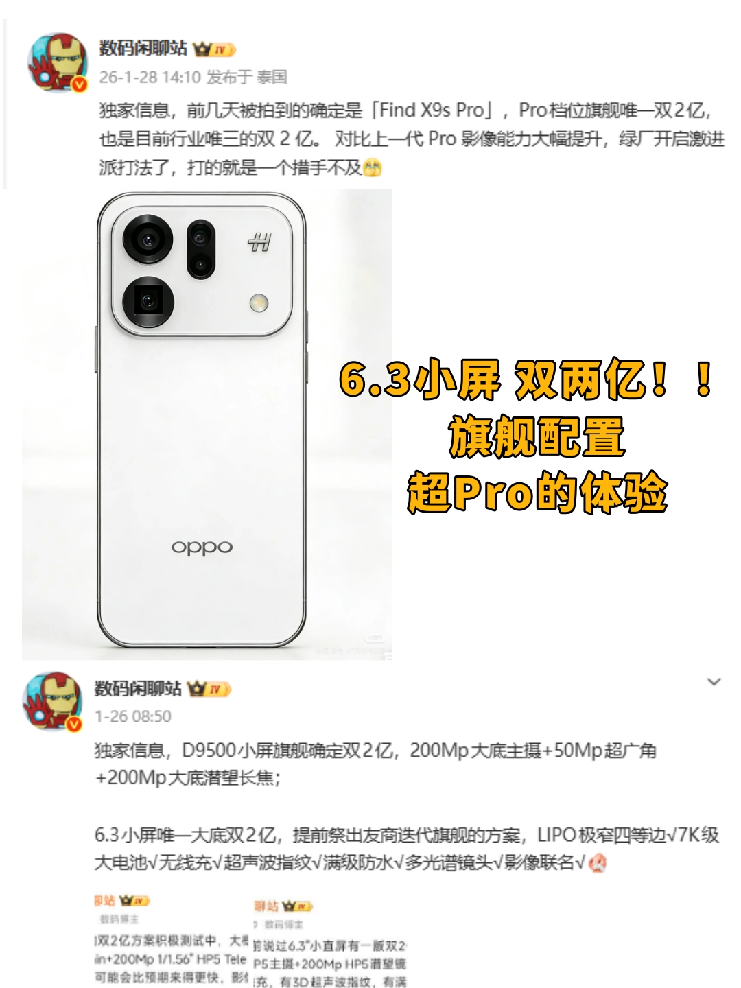 最新机型命名:Find X9s Pro,6.3寸小屏+双2亿像素