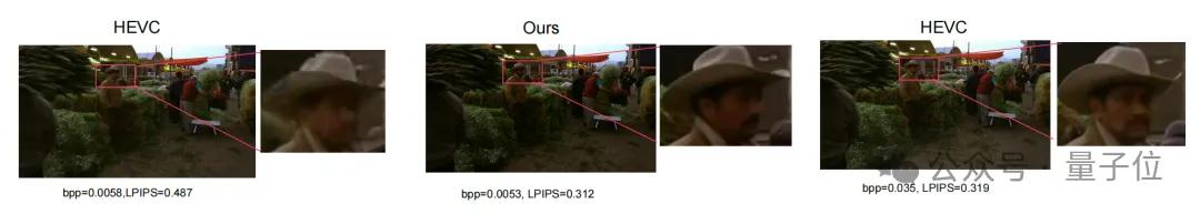 在极低码率下(0.005 bpp左右),使用LPIPS(一种更符合人类视觉感知的画质评价指标)进行对比: