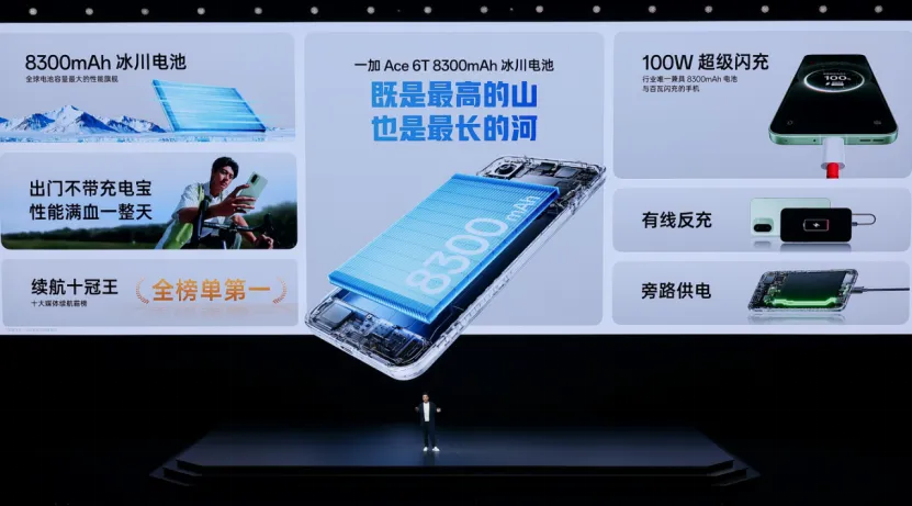 此外,一加Ace 6T还支持“旁路供电”和“有线反充”两大充电技术,也就是说可以在边充边玩游戏时绕过电池直接供电,减少发热升温导致的卡顿体验。还能为另外一台设备反向充电,提供紧急续航。