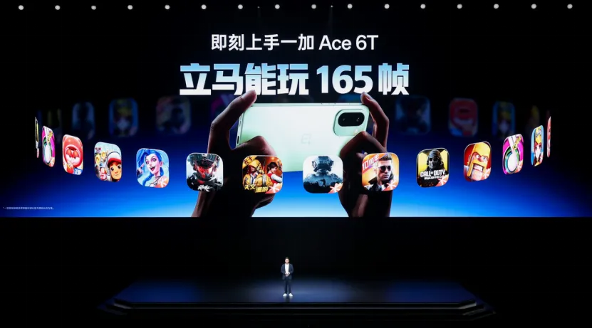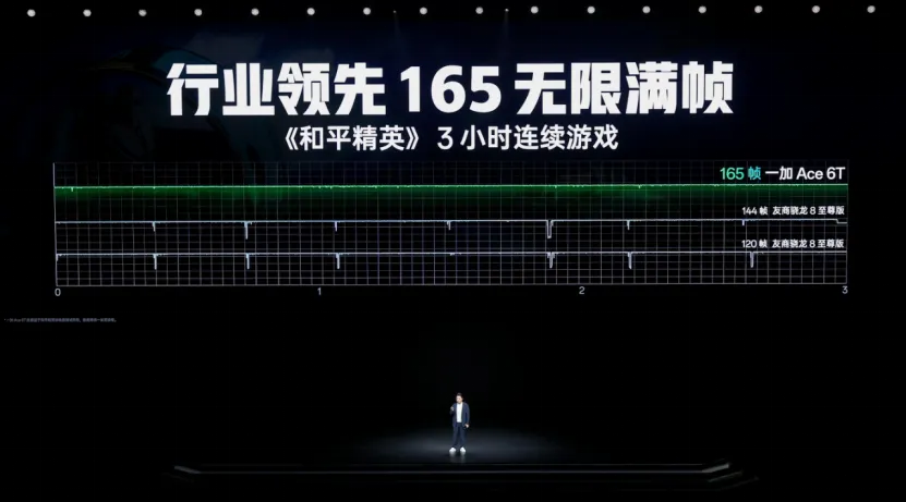 相比主流手机的120帧,一加Ace 6T的165 超高帧游戏每秒画面显示数量多45帧,画面显示速度提升27%,全链路操作时延缩短10ms,每秒操控速度提升17%。